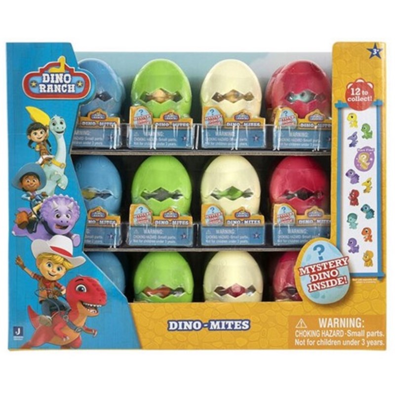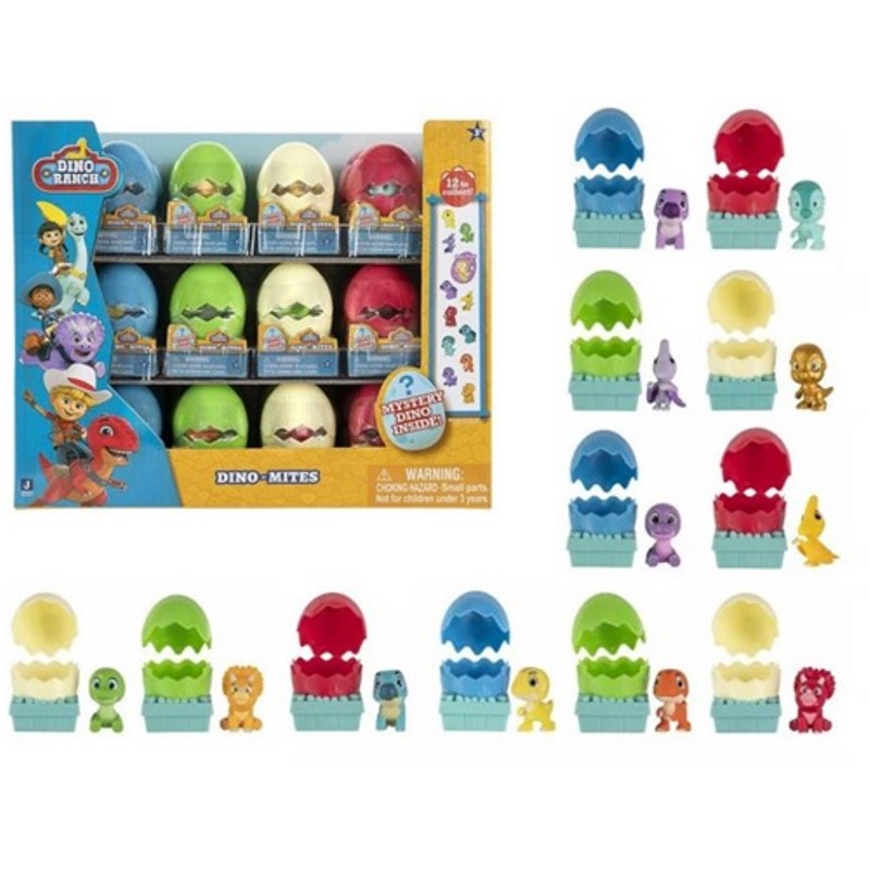 Dino Ranch jaje krije malog dinosaura s farme dinosaura spremnog da bude otkriven, te je pažljivo osmišljeno da iznenadi i očara djecu. U svakom jajetu pronaći ćete različite dinosaure iz popularne serije Dino Ranch. Djeca mogu sakupljati i igrati se sa svojim omiljenim likovima iz crtanog filma. Izrađena su od netoksičnih i izdržljivih materijala te su sigurna za igru i istraživanje djece. Idealno za sate bezbrižne zabave. Jaje potiče maštu i savršeno je za razvoj motorike i mašte. Djeca mogu rekrearirati svoje omiljene scene iz Dino Rancha ili izmislit nove avanture. Savršen je poklon za rođendanske zabave, nagrade ili jednostavno kao poseban poklon iznenađena. Djeca će obožavati primati na poklon ova uzbudljiva jaja dinosaura. Display sadrži 12 različitih Dino Ranch jaja iznenađenja.