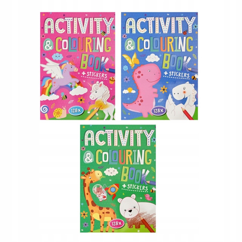 Knjiga za bojanje i aktivnosti sa 128 stranica zabave. Bojanje, zrcalno bojanje, kreiranje likova