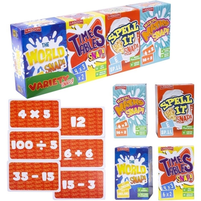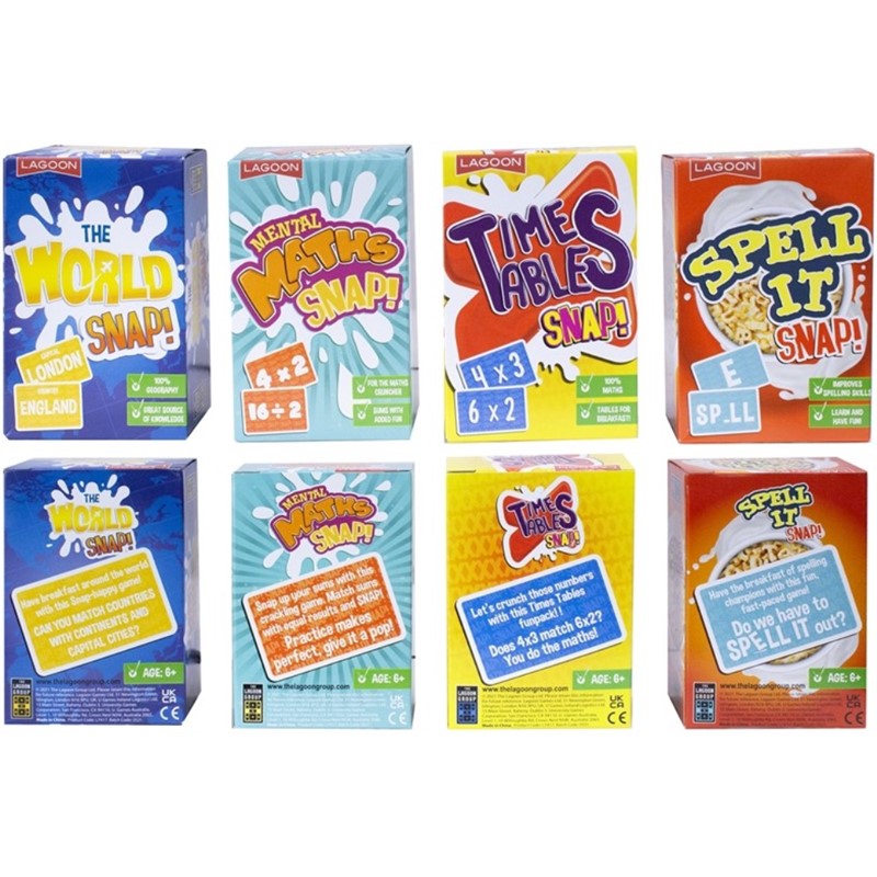 Briljantna kolekcija edukativnih igara u obliku raznih paketa žitarica. Ove inovativno pakirane edukativne igre savršene su za djecu u prvom i drugom razredu osnovne škole kako bi potaknule učenje uz zabavu. Mogu se igrati za doručak ili u bilo koje drugo doba dana kako bi im se pomoglo u poboljšanju i učvršćivanju pravopisa, tablice množenja, mentalne matematike i proširivanju znanja iz geografije.