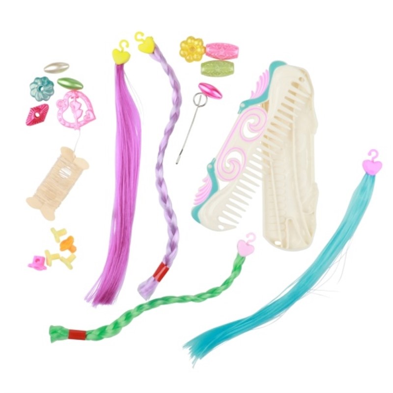 Ukrasite svoj set za kosu perlicama, pramenovima kose, pletenicama i češljem. Nije prikladno za djecu mlađu od 3 godine. Dimenzije pakiranja 39 x 28 x 4 cm