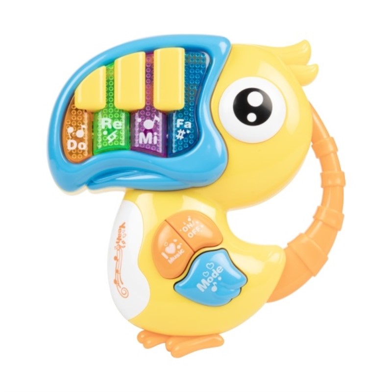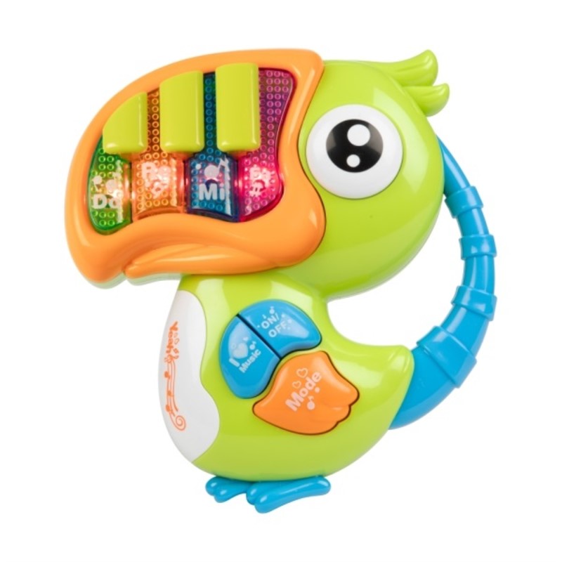 Dječji klavir u obliku tukana s glazbom. Pogodno za djecu od 12 mjeseci. Dimenzije 23 x 22 x 7 cm