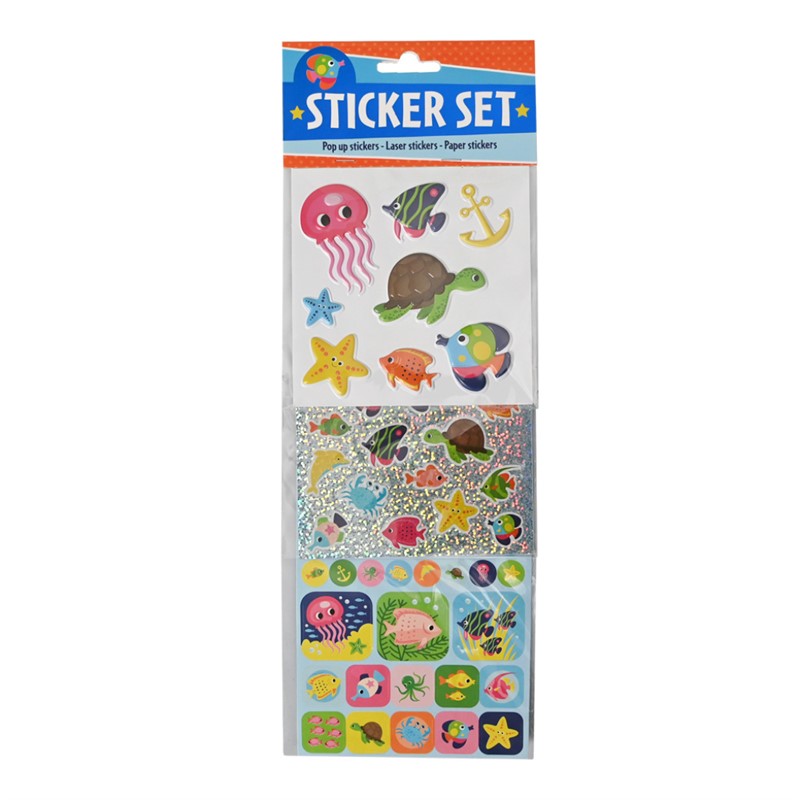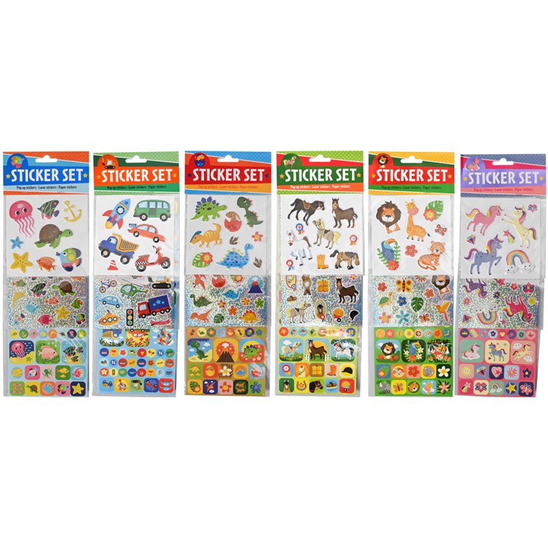 Set naljepnica(trio set) 6 različitih. Različite vrste naljepnica uključujući reljefne i sjajne elemente.