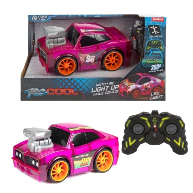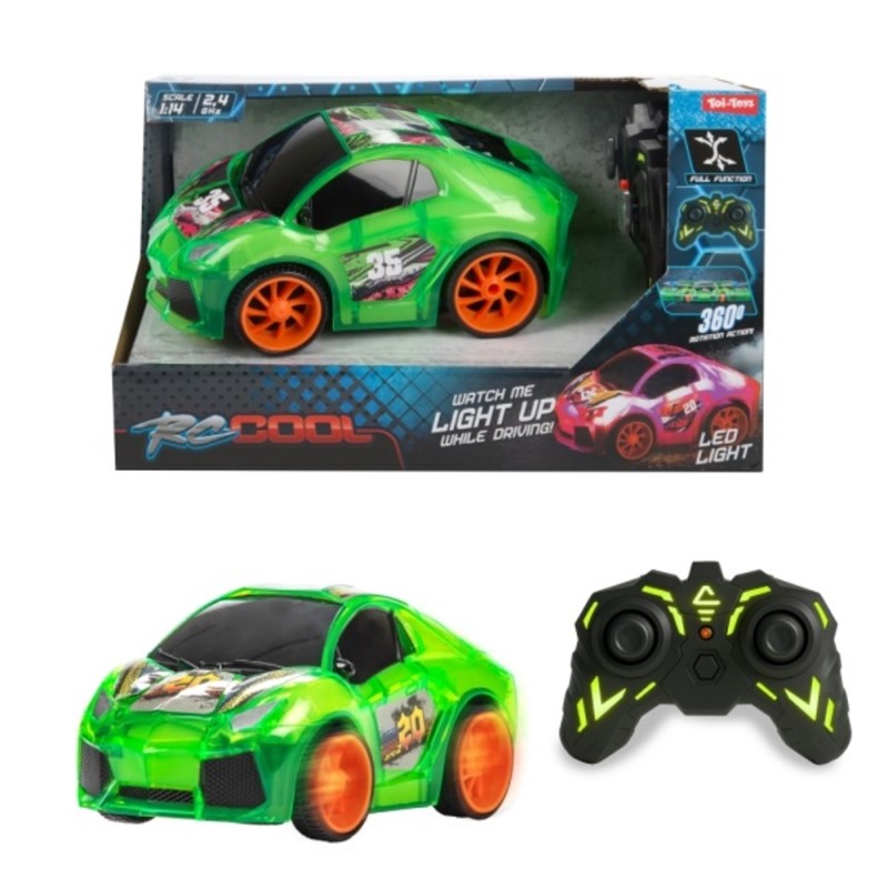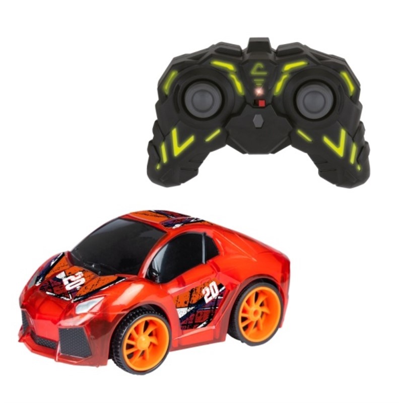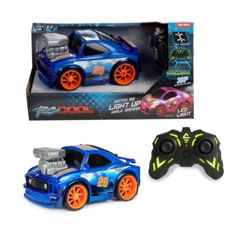 Trkaći automobil na radio upravljanje s LED svjetlima, okreće se za 360 stupnjeva i treperi u živim bojama.Mjerilo 1:14, 2,4 GHz. Dolazi u 4 različite boje. Dimenzije pakiranja 14x24,5x14cm.