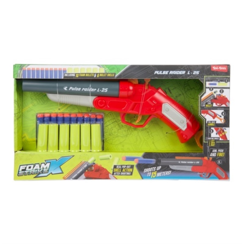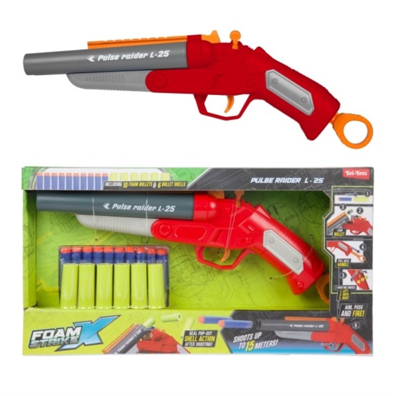 Pripremite se za akcijsku zabavu! Ovaj realistični plastični pištolj ispaljuje mekane pjenaste metke i idealan je za sigurnu igru kod kuće ili na otvorenom. Punjenje je jednostavno, pucanje je zabavno, a 10 priloženih metaka i 6 patrona održava zabavu kontinuiranom. Dimenzije pakiranja 25,5x6x40cm.