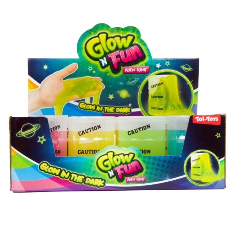 Set sadrži ljigavca u raznim neonskim bojama (zelena, plava, narandžasta, žuta) koji svijetli u mraku. Pakovan je u limenkama koje su pogodne za igru i skladištenje. Ljigavac je rastezljiv i pruža senzorno iskustvo, a po potrebi se lako čisti. Dimenzije pakiranja 8x5,5x5,5 cm.