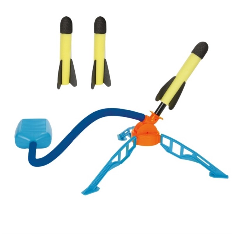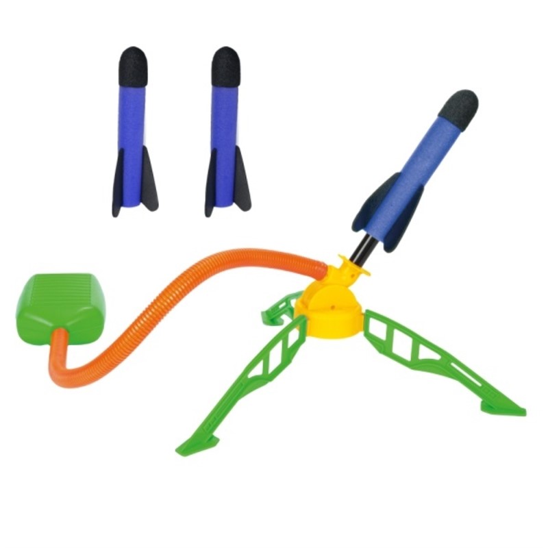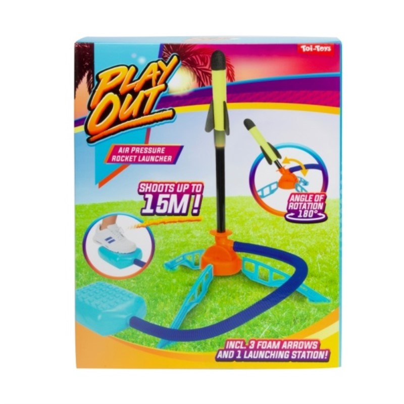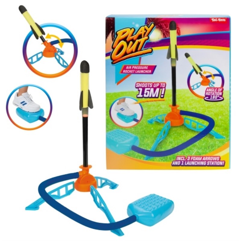 PLAY OUT Sustav za lansiranje raketa pod tlakom zraka – Kul sustav za lansiranje za male raketne znanstvenike. Jednostavno postavite raketu na lansirnu platformu, čvrsto pritisnite zračnu komoru – i ona spektakularno poleti u zrak! Ova igračka na razigrani način uči osnovnu fiziku tlaka i zračne sile, potiče vježbanje na otvorenom i zabavna je i za djecu i za roditelje.Zahvaljujući robusnoj konstrukciji i sigurnim materijalima, ovaj sustav za lansiranje idealan je za vanjsku upotrebu. Bilo da se radi o vrtu, parku ili igralištu – ova raketa na zračni pogon jamči akciju! Dimenzije pakiranja 28,5x22x6,5cm
