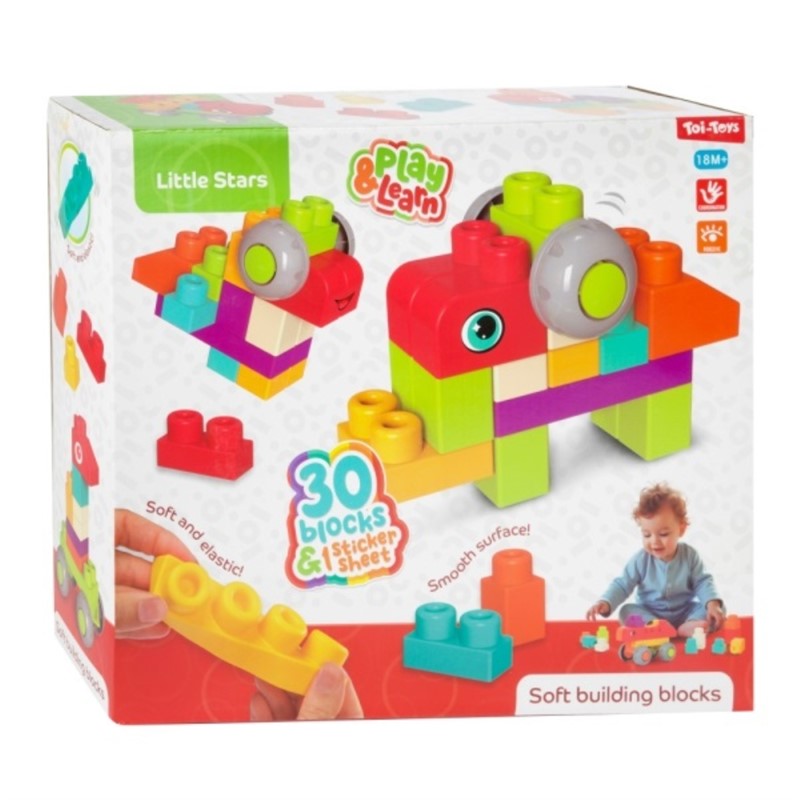 Izrađeni od mekane, sigurne plastike. Dizajnirani za djecu stariju od 3 godine za razvoj kreativnosti i fine motorike. Blokovi su lagani, imaju zaobljene rubove i mehanizam za spajanje koji omogućava stabilno slaganje. Set uključuje različite oblike za izradu životinja. Dimenzije pakiranja 25x29x8,5 cm